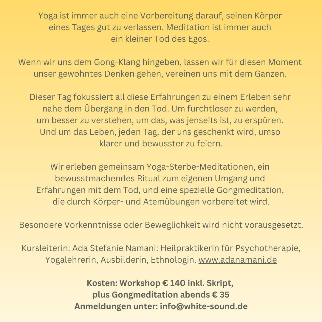 Gutscheine für die Gong Meditation am 13.03.26 sind ab sofort verfügbar! Preis. 35,00 Euro p.P.